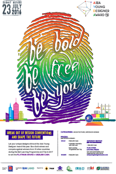 2015年,NPYDA的大賽主題為“用心設計:以人為本打造可持續未來”,鼓勵青年室內設計師和建筑師將便利性與實用性的概念融于設計,將環保的可持續理念融于生活。經過八年的主題深化發展,2016年AYDA重塑歷年核心主題思想,將主題定為“自信 自由 自我”(Be Bold. Be Free. Be You),為學生提供充足的資源以支持他們的設計夢想,同步將AYDA官網打造為一個設計資源中心,構建線上雙向交流平臺,鼓勵各國設計人員廣泛參與交流,還增加了工作職位板塊,為學生及雇主提供工作交流的平臺,讓優勢資源發揮最大效應。