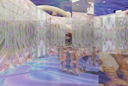 空間是生命能量發生劇烈變化的瞬間,是生命、身體、器官、感覺與邏輯、瘋狂、思想的軌道發生交叉與變化的瞬間:戴帆的空間是盲目的和野蠻的,即以一種能量級向另一個能量級轉化時發生的劇烈變化,最終以一種繁復的感官暴力美學的面目出現,空間是他探索新的空間形式的野蠻實驗。空間如器官、迷狂選擇旋渦般的蛇的圖像、幽靈相似的漢代人俑、海洋的珊瑚礁、心長如無處不在的旋風,吞沒觀眾。空間中的異質要素激發不同強度的情感反應,視覺暴力、過度、精神錯亂、瘋狂,異質空間的特征就是違反同質社會法律的產物,顯示出對一種極端情緒的服從,他把一種令人不安的令人興奮的價值轉移到空間中,賦予空間。空間不含從唯一一個角度來攫取事物的外形,它不滿足于單一的概念和感覺,不滿足于多樣化和意義的會合,不斷地考察多樣化之所以誕生的精神潛力的程度,參與感覺的強烈詩意,于宇宙磁力的各種客觀程度保持奇妙的關系。
