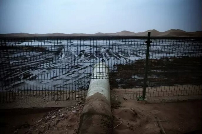 2014年8月29日,內(nèi)蒙古阿拉善左旗,騰格里沙漠深處,一片鹽堿地被附近化工廠直接排放的污水污染。