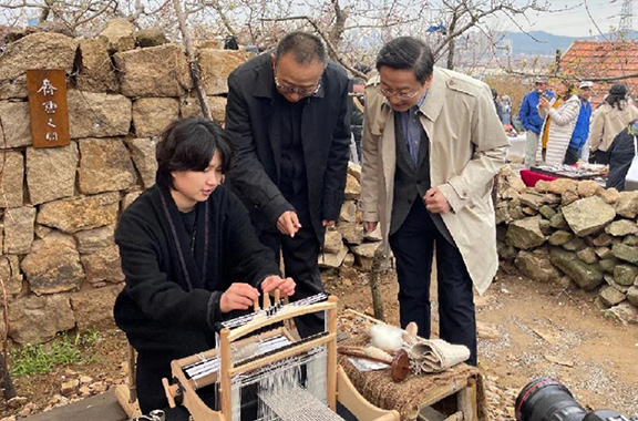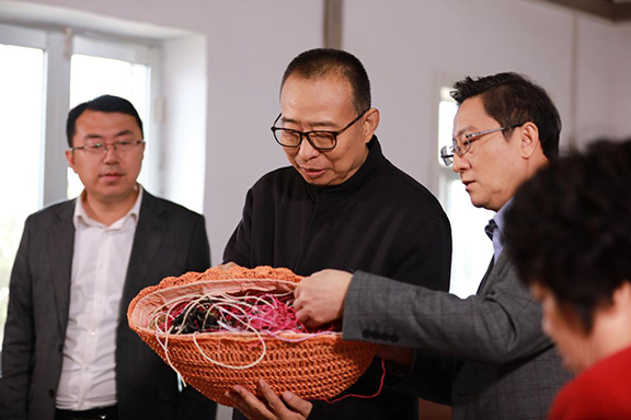 潘魯生在藏馬鎮實地調研了藏馬鎮編織工藝,詳細了解藏馬鎮鉤編工藝的推廣情況、編織產品的經營銷售和帶動農民增收情況。潘魯生認為,傳統手工藝要立足當地手藝文化,在傳承中不斷實現創新,緊密貼合市場發展需要,把當下需求、時尚創意、設計創新等融入傳統手工藝品加工、銷售中,在傳承保護傳統手工藝的同時,讓手工藝成為農民增收創富的重要手段。