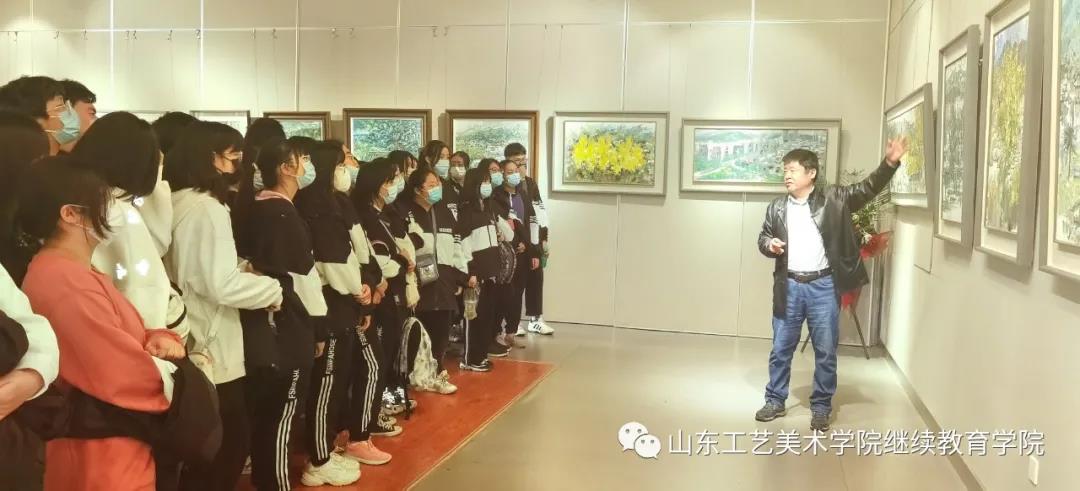 由山東工藝美術學院、山東省美術設計家協會和濟南市博物館主辦,繼續教育學院和社區藝術大學承辦的“翰墨丹青頌黨恩——任仲泉繪畫作品展”于2021年10月1日——15日在濟南市博物館成功舉辦。展覽期間山東工藝美術學院領導及部分駐濟高校的師生先后到展覽現場組織觀摩教學、開展“感黨恩、跟黨走”等主題黨日活動。作者為大家認真講解創作理念和方法,與觀眾深度交流。通過展覽,也為作者進一步提升藝術創作和教學與管理水平搭建了良好的交流平臺。