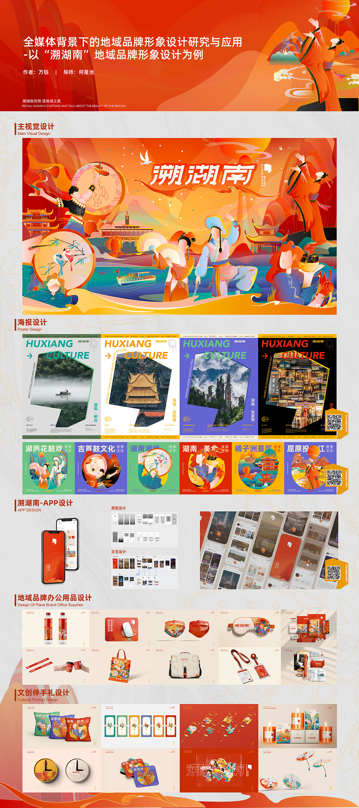 設計說明:在全媒體背景下,媒介傳播途徑發生巨大改變,信息傳播方式變得多元。“溯湖南”地域品牌形象設計借助全媒體,將傳統的地域品牌形象設計方法與全媒體的新技術與新體驗方式充分融合,構建了地域品牌形象設計的新思路。針對典型目標人群展開代表性的特點研究,以點帶面提供一種新的地域品牌共創文化的可持續實踐案例。