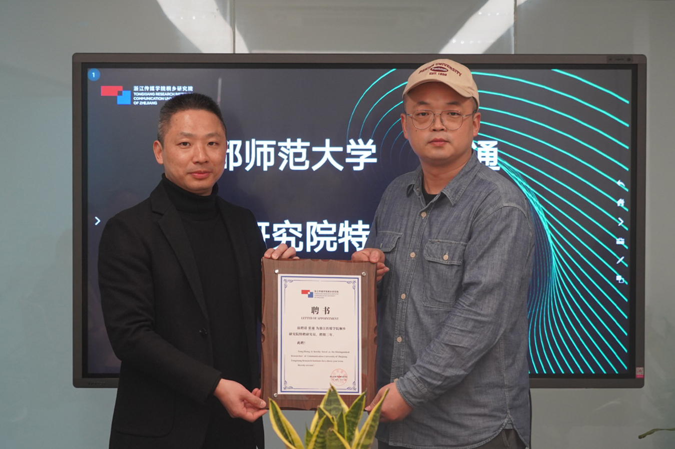 會上,楊超為李中楊、張通頒發(fā)了浙江傳媒學院桐鄉(xiāng)研究院特聘研究員聘書。