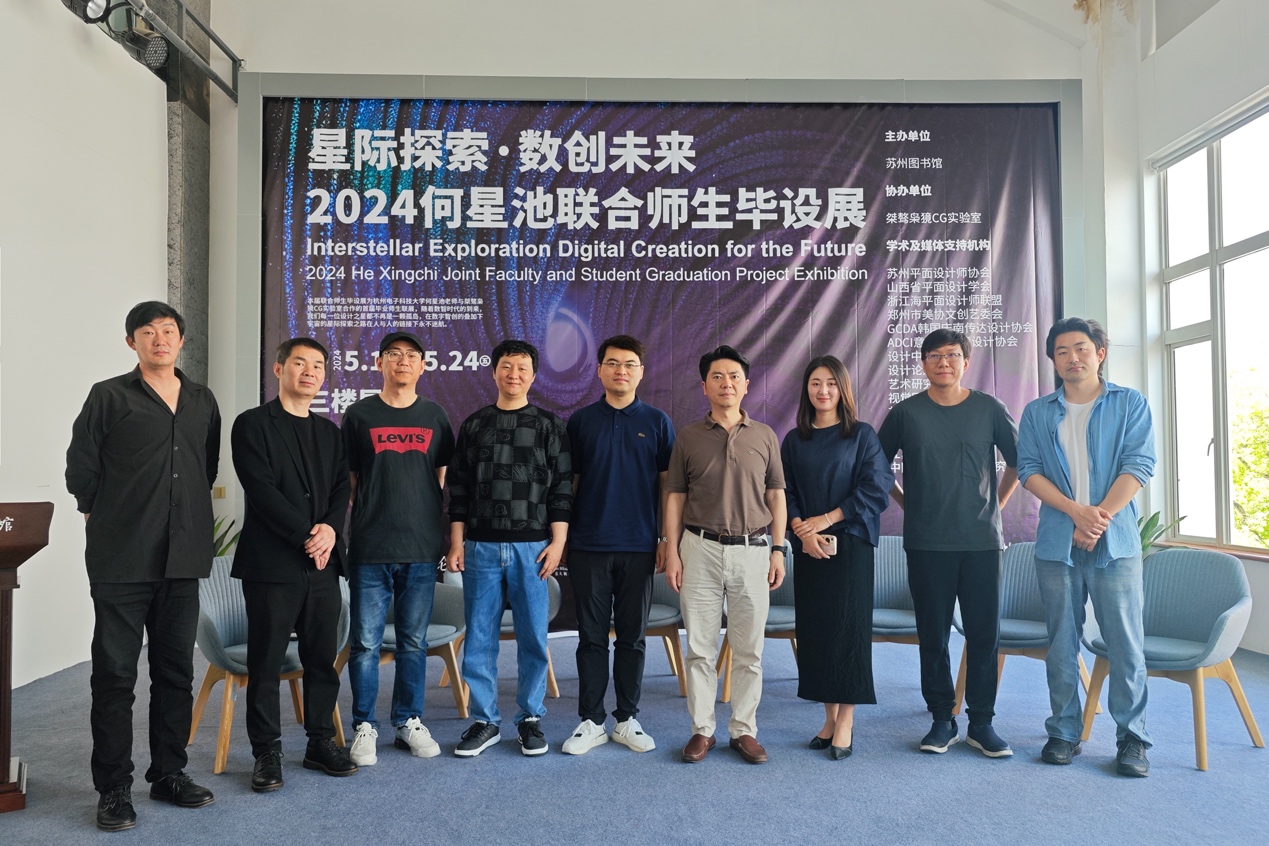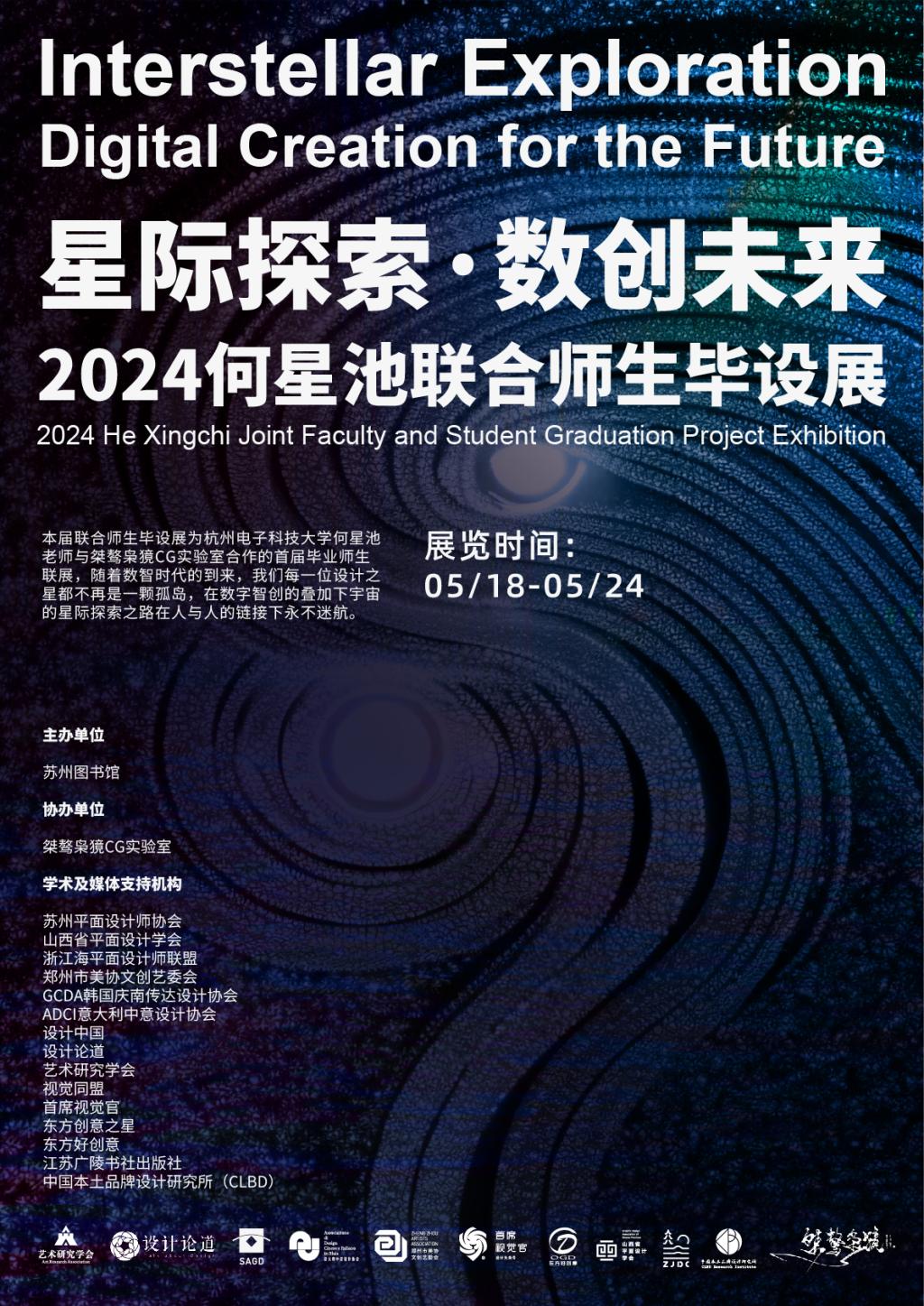 如夢江南的蘇州城,一場充滿創意與想象的展覽在蘇州圖書館正式拉開帷幕。由蘇州圖書館主辦的“2024星際探索·數創未來何星池聯合師生畢設展”于近日盛大開幕,5月18日-24日為期一周共展出了何星池老師弟子與桀驁梟獍CG實驗室共創的畢業設計作品80余件。展覽首日上午10點舉辦了開幕儀式并召開了“星際探索·數創未來”微論壇,與會嘉賓有蘇州科技大學藝術學院院長、教授,中國實學研究會社會美育專委會委員,蘇州美術家協會藝術設計專委會主任莫軍華;江南大學設計學院副教授李振宇;江南大學設計學院副教授楊濱;蘇州工藝美院視覺傳達學院副教授謝晉業;浙江機電職業技術學院教師武凡;蘇州大學數字媒體藝術系教師李欣麟;杭州電子科技大學特聘副教授何星池;蘇州如視設計有限公司創始人沙鋒;桀驁梟獍CG實驗室創始人邱思,桀驁梟獍CG實驗室成員曾新宇、楊俊。