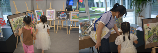 兒童們參觀作品并拍照