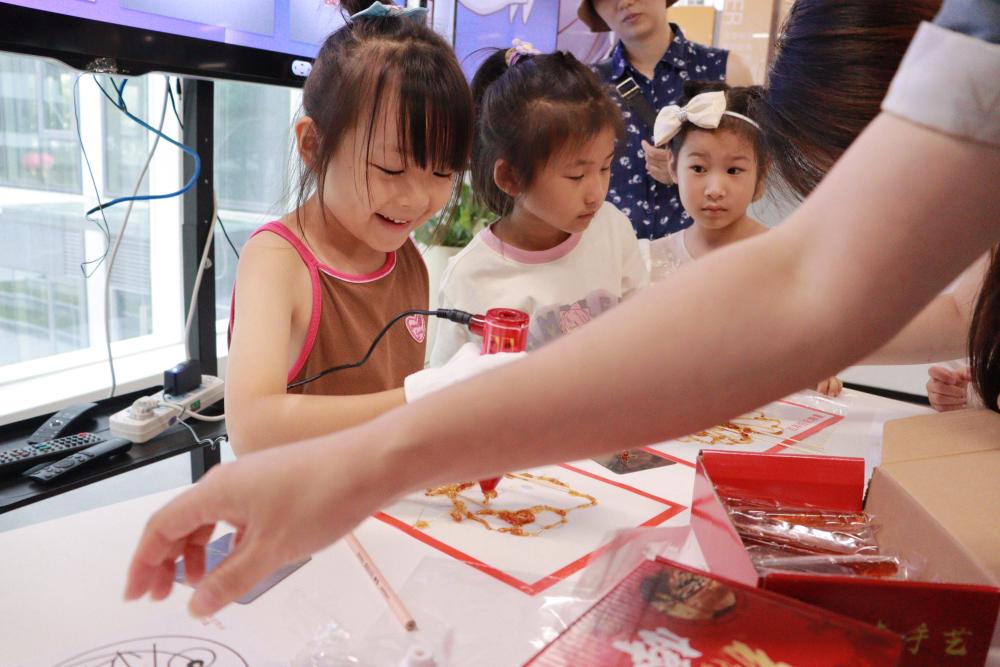 兒童們開心地體驗糖畫創(chuàng)作