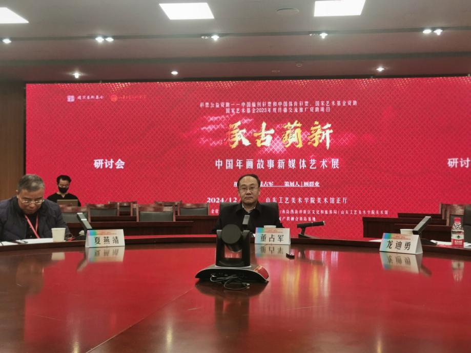 2024年12月12日,由國(guó)家藝術(shù)基金指導(dǎo)、泰山學(xué)者藝術(shù)學(xué)團(tuán)隊(duì)支持、山東工藝美術(shù)學(xué)院主辦的《“承古萌新”:中國(guó)年畫(huà)故事新媒體藝術(shù)展》學(xué)術(shù)研討會(huì)在山東工藝美術(shù)學(xué)院國(guó)際報(bào)告廳召開(kāi),本項(xiàng)目負(fù)責(zé)人為:山東工藝美術(shù)學(xué)院董占軍院長(zhǎng)。