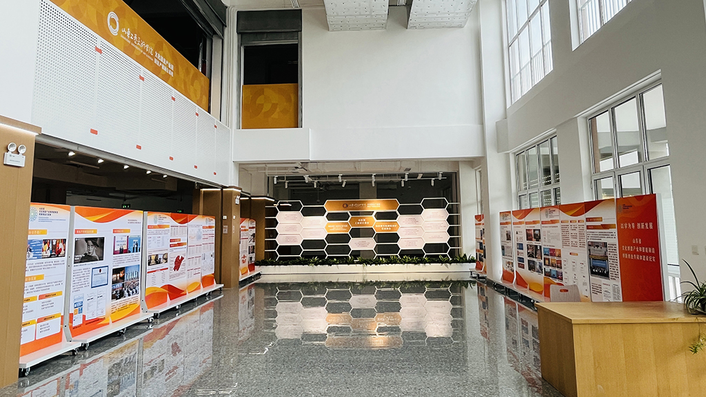 山東工藝美術學院文化創意產業園(國家產教融合基地)于2024年7月正式啟用,主要分為社會服務用房、教師科研用房和配套后勤保障用房等用途。產業園首批入駐18家企業、27個科研工作室,包括行業領先的企業設計研發部門、行業駐會機構、設計企業、教師工作室等多種類型主體,涵蓋品牌、包裝、產品、游戲、展示等多個領域方向,通過打造創意設計生態,集聚文化創意產業發展,搭建起了產教融合、校企業合作的平臺載體,形成了“企業出題、科研解題、項目合作、人才交流”的創意循環機制。
