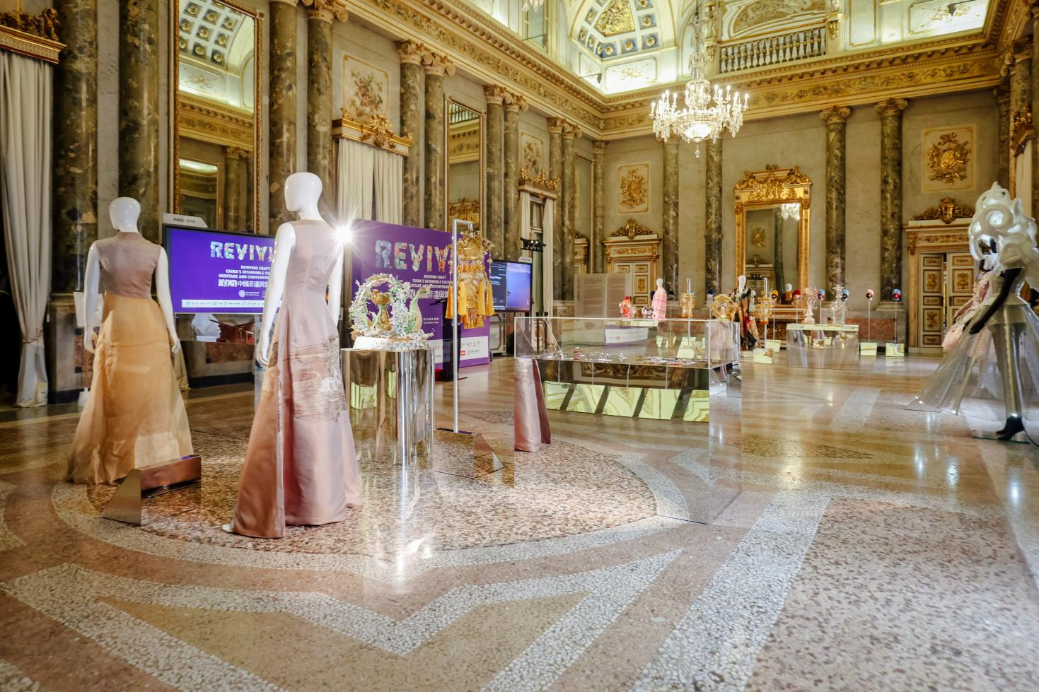 當歷史的針腳綴入現代的剪裁,當東方的絲綢映耀西方的珠寶,一場跨越時空的對話在光影間悄然蘇醒。“相逢·宴會”展區以“開放與包容”為基調,通過服飾、珠寶與數字藝術作品,重現文明相遇的璀璨時刻,仿若開啟多元文化的初遇之旅。