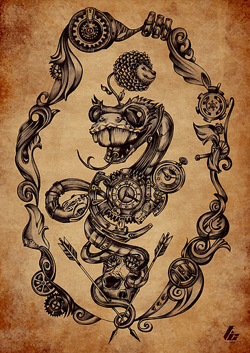 費程:在首爾COEX里舉行的動漫展上,我第一次接觸到了這類作品。我本人喜歡無盡的想象,懷舊又分裂---假設過去,幻想現實和未來,偶爾有些“惡趣味”,思想架空,特別跳躍。而蒸汽朋克藝術通常會展現出強烈的技術矛盾——過去與未來的發明同時存在,維多利亞時期懷舊的情節永遠不會消失,只是以另一種方式承載新的技術展現給大家。比如說,2016年時尚界狂刮復古風潮,機械的黃銅色,金屬部件,齒輪圖案,刺繡手法等等,都被時尚寵兒用到了服裝上-----時尚是一個輪回。仿佛銹跡斑斑的齒輪可以給現代人講故事,而現代機械元素的廣泛應用像是在紀念整個維多利亞時代。我很喜歡一位來自莫斯科的蒸汽朋克藝術家Dmitry Filippov,他的作品融合了蒸汽機的設計味道,張力很強,野蠻之中有著優雅的氣息,散發著未知和等待發現的信號,這讓我太好奇了。