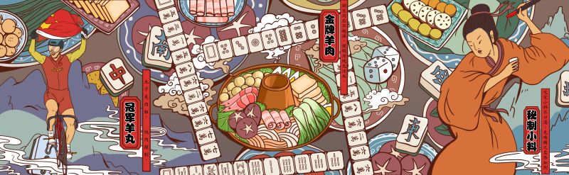 李瑩:我不認為自己是個優秀的設李瑩:計師,我希望我的下一幅作品會比這一幅作品好。商業插畫作品相對滿意的是去年的紅中火鍋插畫,創作理念就是把美食與麻將和品牌文化結合,采用古典壁畫的風格去表現,當火鍋以這種形式出現在墻上的時候,好像自己是個原始人,記錄了一件關于吃的故事,哈哈。