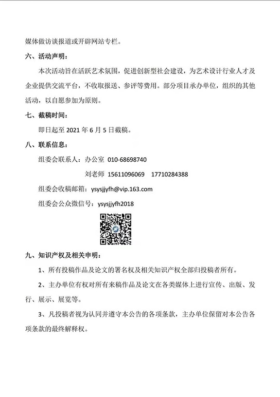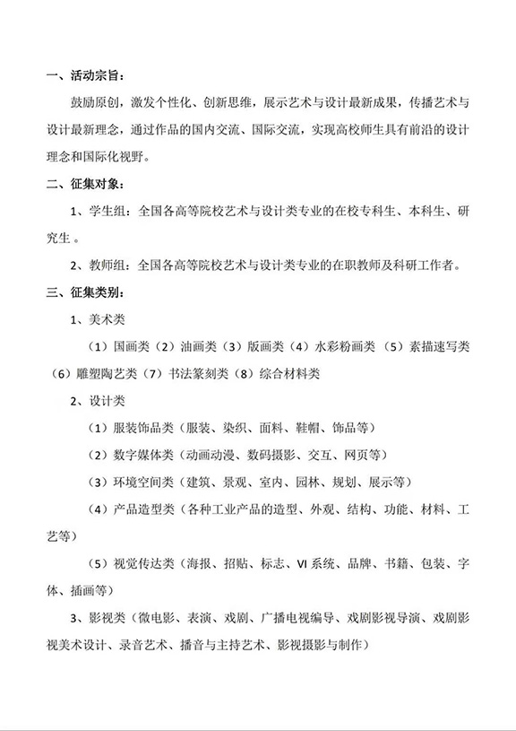 首頁 > 設計賽訊 > 正文 資訊 設計訪談 設計賽訊 藝術名家 青年藝術家 視頻 素材教程 藝術展覽 設計志 第五屆“國青杯”全國高校藝術設計大賽 發布: 2021-03-26 00:00 | 作者: | 來源: 設計藝術 學生組作品報名表 C:\fakepath\777.docx 教師組作品報名表 C:\fakepath\888.docx