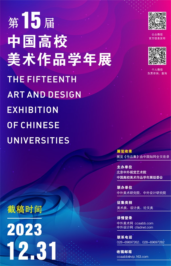 4、由主辦單位編輯出版《第十五屆中國高校美術作品學年展作品集》,收錄所有等級獎獲獎作品,并贈送獲獎作者一冊;該《作品集》將同時由中國知網全文收錄。