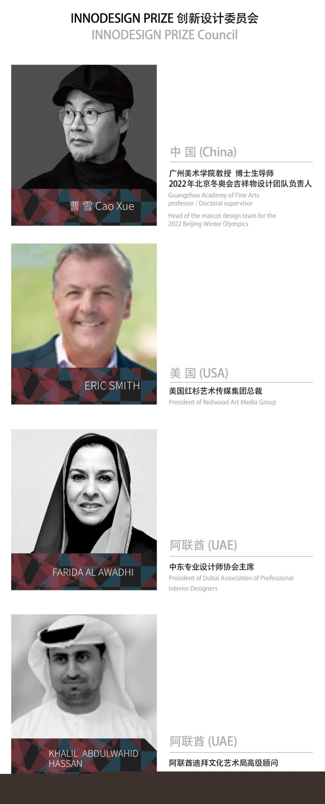 INNODESIGN PRIZE全球創新設計大賽歷經多年砥礪前行,現已成為具有一定知名度及全球性影響力的創新設計賽事。2022年,法國INNODESIGN PRIZE國際創新設計大賽全面升級為INNODESIGN PRIZE全球創新設計大賽,攜手美國紅杉傳媒集團、中東(迪拜)專業設計師協會、迪拜設計周組委會、意大利米蘭理工大學、意大利ADI設計博物館等國際機構,為參賽設計師提供更廣闊的創新設計全球舞臺,并共同推動INNODESIGN PRIZE獲獎者的全球影響力。同時成立INNODESIGN PRIZE亞太區組委會,并在亞太區學術委員會的指導下,參與大賽組織及參賽作品的評審工作。 INNODESIGN PRIZE Global Innovative Design Competition, after years of perseverance, has now become an innovative design competition with certain popularity and global influence. In 2022, France INNODESIGN PRIZE International Innovative Design Competition will be upgraded to INNODESIGN PRIZE Global Innovative Design Competition. In collaboration with Redwood Art Media Group, Association of Professional Interior Designers (Dubai), Dubai Design Week organizing Committee and etc, INNODESIGN PRIZE will provide participating designers with a broader global stage for innovative design, and jointly promote the global influence of INNODESIGN PRIZE winners. 2024年,INNODESIGN PRIZE全球創新設計大賽將在原有五大類別的基礎上,單獨設立INNO AIGC設計獎項,希望全世界的AIGC玩家一起來創造夢想。INNO AIGC類別的投稿將接收獨立評審,目前,INNO AIGC專業評審團成員共9名,分別來自清華大學美術學院的跨媒體藝術家、前世界500強AIGC產品負責人以及INNODESIGN PRIZE全球創新設計大賽評審團成員等優秀評委。 In 2024, INNODESIGN PRIZE Global Innovative Design competition will set up a separate category INNO AIGC based on the original five categories, hoping that AIGC players around the world can create dreams together. The applications for INNO AIGC category are subject to independent jury team. Currently, there are 9 members of INNO AIGC Professional jury, including cross-media artists from the Academy of Fine Arts of Tsinghua University, former World Top 500 AIGC product leaders and members of the jury of the INNODESIGN PRIZE. 2024年4月15日,第十一屆INNODESIGN PRIZE全球征稿正式在法國、美國、意大利、俄羅斯、阿聯酋及中國等多個地區同時啟動,今年我們繼續開啟歐洲設計交流學習之旅,并計劃在意大利米蘭隆重舉辦INNODESIGN PRIZE頒獎盛典! On April 15, 2024, the 11th INNODESIGN PRIZE was officially launched in France, the United States, Italy, Russia, the United Arab Emirates and China at the same time. This year, we continue to start design exchange learning trip in Europe and we plan to hold the INNODESIGN PRIZE award ceremony in Milan, Italy! INNODESIGN PRIZE全球創新設計大賽組委會期待各位的踴躍參與! The organizing committee of the INNODESIGN PRIZE Global Innovative Design Competition looks forward to your active participation!