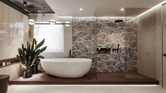 衛(wèi)生間的設(shè)計設(shè)計師通過巧妙的構(gòu)圖手段營造出靜謐的意境,水泥質(zhì)感的墻面自然樸素,讓使用者在這里產(chǎn)生放松而平靜的舒適心境。