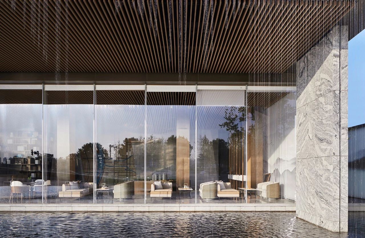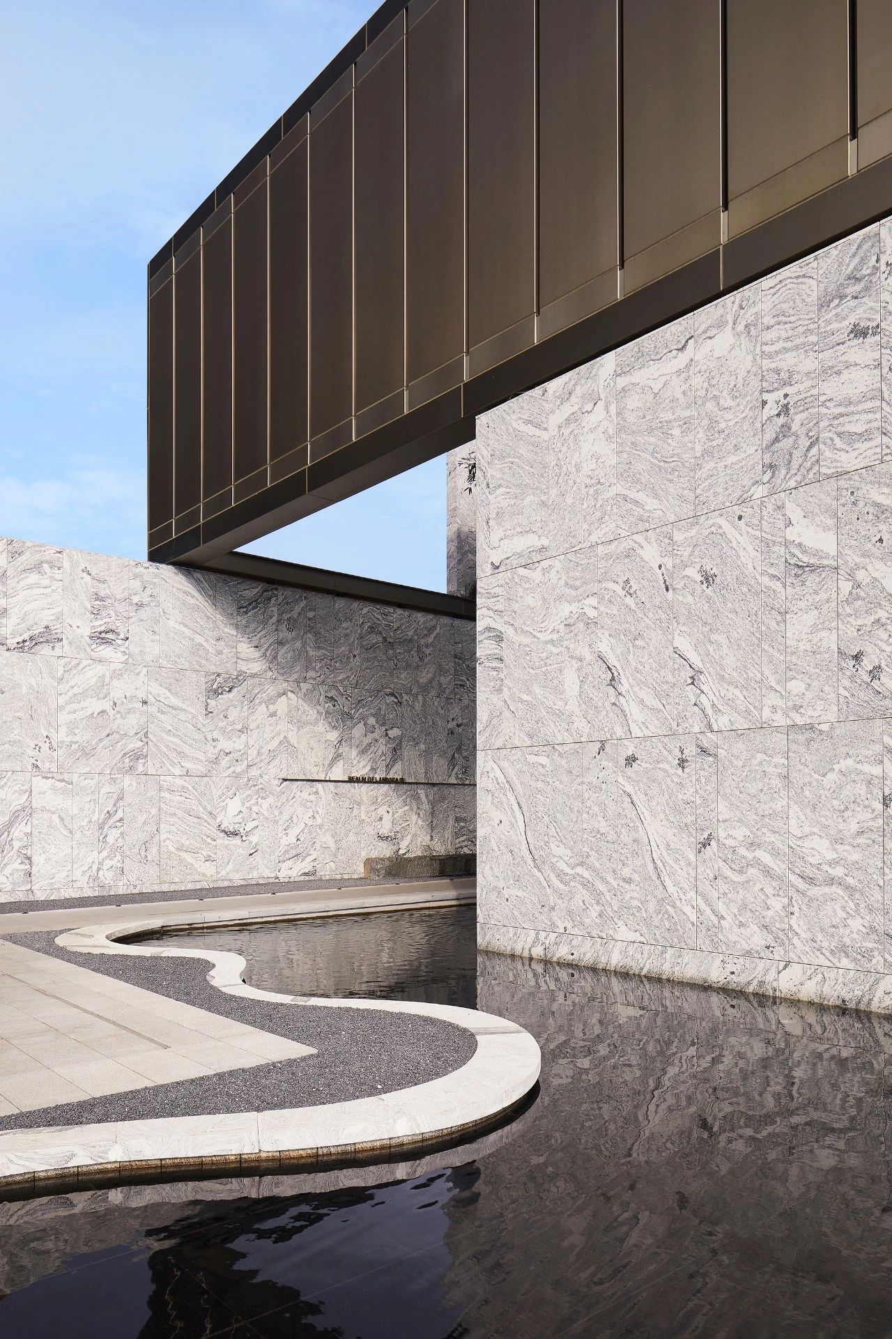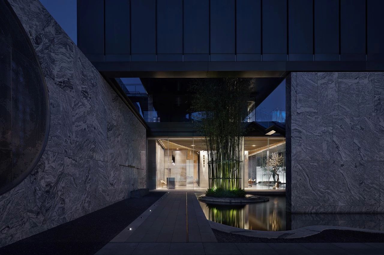 物形表象的渲染描摹,精神視像的化形延展,皆歸于設計師藝術筆法的融通與洞察。光影隨風入詩境,建筑的美學尺度悉數襯于可見的山石、水幕、折階、庭樹,與無限綿長的人文底蘊相和,構建出一方靈韻天成而隱逸自在的天地。