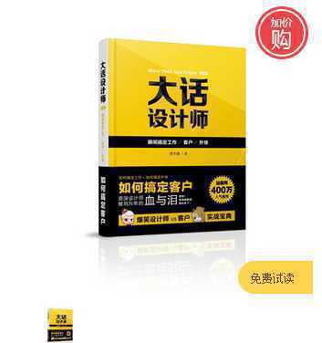 這本書主要講解的是,設計師平常的工作,接單,的一些問題,比如面對領導,老板,客戶,設計對接的時候如果和他們溝通。還有在平時接單時應該如何報價,何時跳槽等。都會在這本書中講到,適合沒有工作經驗的學員,對于工作的好多事情不等 的這本書建議大家好好看看。
