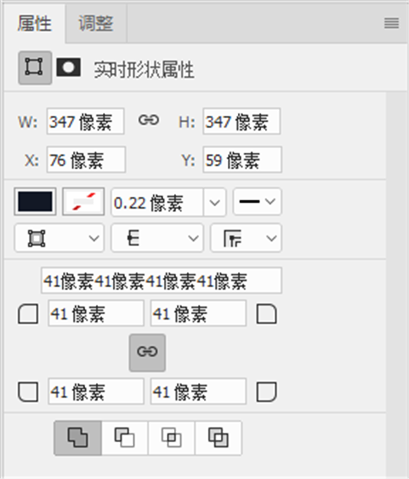 2.新建畫布之后我們開始創(chuàng)作圖標(biāo),首先建立圓角矩形,按住shift鍵畫一個正圓角,右側(cè)屬性欄調(diào)整圓角大小。