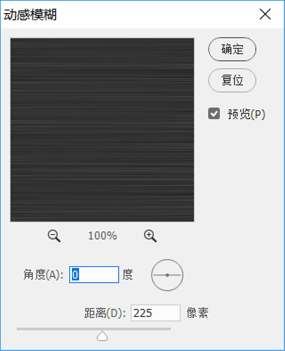 (4)繼續(xù)執(zhí)行“濾鏡”-“模糊”-“動感模糊”,模糊方向可以自定,模糊距離越大還是效果更明顯。