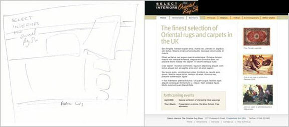 從零開始做網(wǎng)站是一個(gè)非常有名的網(wǎng)站,提供建站方面的實(shí)用性建議。在網(wǎng)站設(shè)計(jì)全攻略實(shí)用指導(dǎo) 這篇文章中,對(duì)于用鉛筆畫草圖,作者如是說:“草圖能夠快速的將我腦子里的想法描繪下來,不容易忘記,并快速用Photoshop繼續(xù)創(chuàng)作。這種方法比直接用Photoshop創(chuàng)作高效的多。”如下圖,左邊是是草圖,右邊是最終設(shè)計(jì),繪畫功底依然不是必要的。