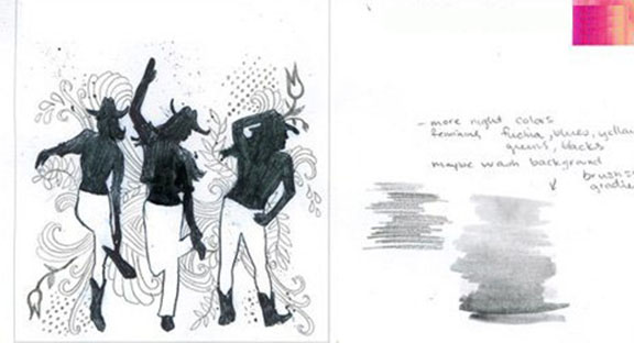 在由草圖到矢量圖一文中,GoMedia的比爾說他們盡可能早的去獲得客戶的認(rèn)可。在畫出更精確的草圖前,他們將一系列粗略的草圖拿給客戶。左下圖是客戶從中挑選出的草圖。在草圖經(jīng)由電腦制作之前,先畫出如右下圖一般更具體的草圖。