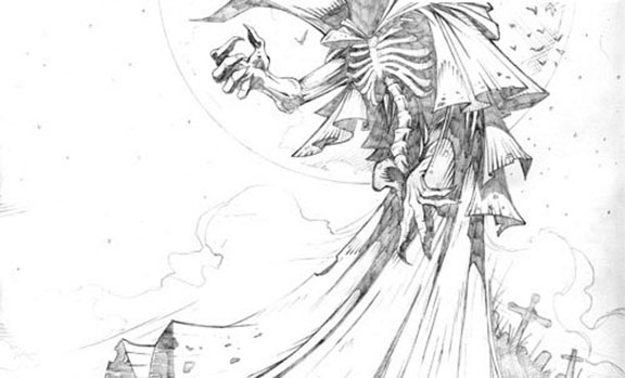 在這個(gè)工作室中,素描人員將創(chuàng)意畫出來,然后客戶與藝術(shù)指導(dǎo)和設(shè)計(jì)師一同進(jìn)行修正。在原圖進(jìn)行下一步的上墨和涂色之前,要先取得客戶的認(rèn)可。這樣能夠節(jié)約時(shí)間,并沉淀創(chuàng)意。下面這個(gè)例子就是與客戶進(jìn)行溝通的草圖。通常這張草圖被送到客戶手中進(jìn)行確認(rèn),或取得修改建議。一旦草圖方案敲定,設(shè)計(jì)就移交至下一個(gè)流程--線條著墨,人物上色。