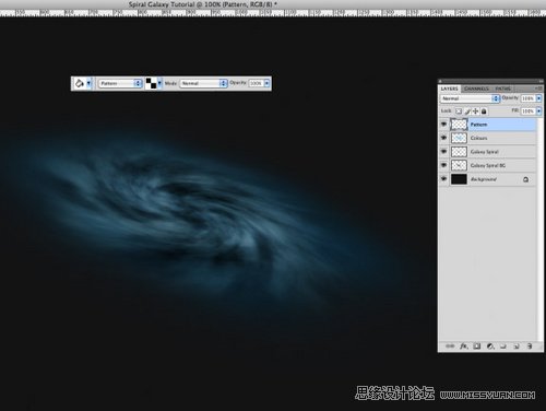 本photoshop教程將教大家如何使用濾鏡和簡單的轉換工具在Photoshop中創建螺旋星系。本PhotoShop教程是針對初學者的,在這里你會學到不同的變換方式,云彩濾鏡,選區選項,以及如何使用混合模式。先看下最終效果: