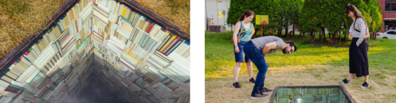建在地下的圖書館非常罕見,但在魁北克的草坪上,就有這樣一座可看見但不可看書的圖書館,像豎井一樣深入地下,又用玻璃隔絕入口,吸引著滑板少年、遛彎小狗等各種路人。