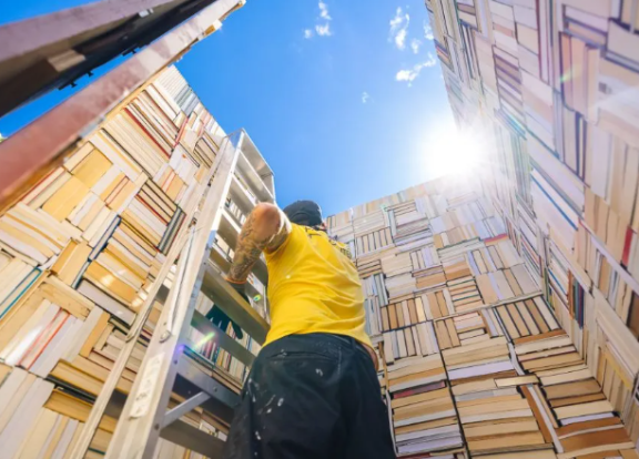 這是瑞典藝術家 Susanna Hesselberg 的作品《父親的去世如同一座圖書館的倒塌》,對 Susanna Hesselberg 來說圖書館就是整個世界,她將失去親人的深切痛苦與圖書館被毀壞的悲劇進行比擬。圖書館像墳墓一樣被埋葬,書中沉默的思想與智慧被永久阻隔著。