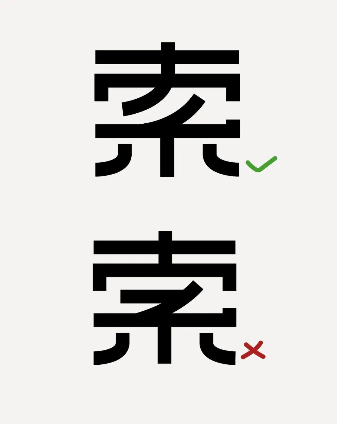 那么,怎么能保證識別度呢,刪減筆畫的選擇很重要,如上圖;上面的“索”,減的是橫筆,下面的“索”,減的是斜筆,很明顯,上面的更好識別。