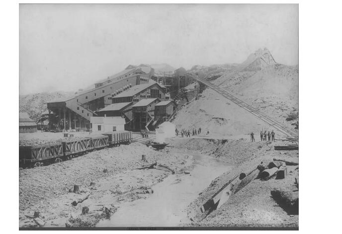 無煙煤從礦場出來后,被打碎并分類成各種大小的塊去銷售,這項工作一般在礦場或附近進行。在這張照片中,中間巨大的傾斜棚屋結構是破碎機,煤是從礦井運來的,然后從建筑物的頂部進入。它首先通過強大的滾輪與鋒利的牙齒使大塊煤碎裂成碎塊,然后滑過一個長斜面,通過許多柵欄。柵欄是由鐵棒組成的,在距離較遠的地方擋上鐵條,只有細小的煤粉才會通過。當煤塊沿著柵欄向下移動時,就被那些男孩們撿了起來,挑出來扔在一邊,恰巧與之混合在一起的是其他煤塊。石塊和垃圾則被放在垃圾堆上。在這張照片中,右邊是很值得注意的。在垃圾場的頂部,是支著兩條礦車軌道的框架。通過這個框架,裝滿石板的礦車在傾斜層上被卸空。破碎機上的煤通常用水沖洗,除去灰塵和其他雜質,然后堆放到一起。在這張圖片中,右端是一大片煤塵或煤矸,直到最近幾年,煤矸仍然作為無用的廢料被堆積如山。前景里可以看到,鐵路漏斗車滿載著煤以供運輸。賓夕法尼亞州幾乎生產世界上所有的無煙煤。