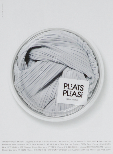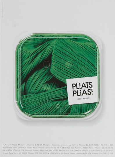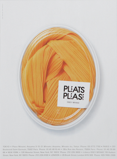 日本平面設計師佐藤卓解釋說:2012年,PLEATS PLEASE ISSEY MIYAKE 20周年紀念,我們采用《delicious 美味》這個視覺概念。讓你看見衣服的直覺是「哇!看起來真好吃,我想穿它! Wow that looks delicious, I want to wear it! 」美味的東西,是這次我們對 PLEATS PLEASE 的企劃概念。