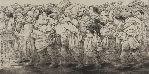 單應(yīng)桂《逃亡——童年的回憶之一》-123x246cm-國(guó)畫(huà)