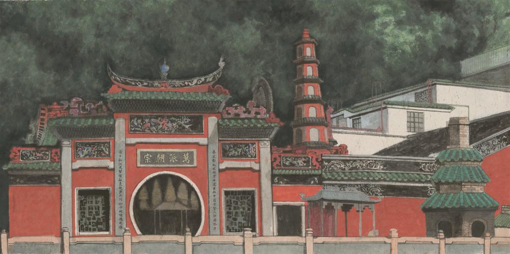 《澳·媽閣廟》2023年124x245cm紙本·彩墨 潘魯生