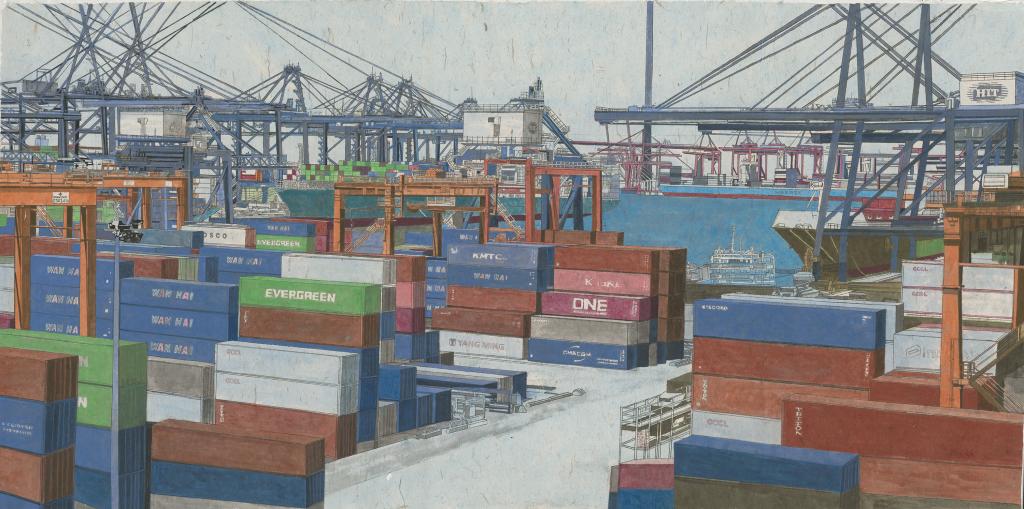 《港·葵涌碼頭》2022年124x245cm紙本·彩墨 潘魯生