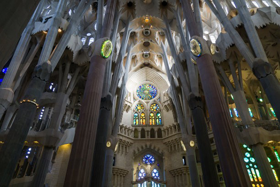 圣家族大教堂是高迪的著名作品,同樣也是他的遺世之作。它始建于1882年,并且在1883年由高迪接手主持。他將自己的設計風格與理念融入其中,自然主義、曲線的形式在世人面前表現的淋漓盡至。例如教堂的雕刻采用了自然景觀與圖像;它的內部的裝飾抽象,用平滑的曲線和鋸齒狀的節點組合而成,甚至教堂內部的立柱表面都是千變萬化的。另外色彩的表達也是圣家堂的獨有特質,彩色玻璃借助自然光增強了教堂的感染力;高塔和屋頂上的釉飾和琉璃異彩紛呈……雖然高迪一生未婚,幾乎全部的生活都圍繞著設計,但是在我看來他的建筑里體現的浪漫,細膩,無微不至,足以讓全世界的女性都愛上他!