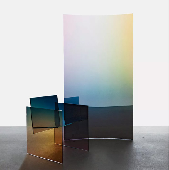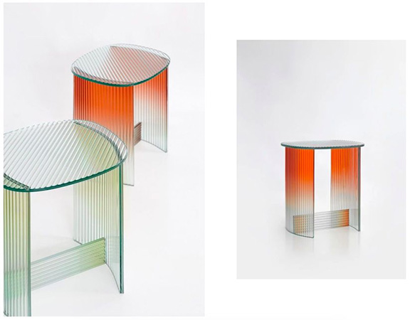 Ermics用彩色玻璃窗格創(chuàng)造Ombré椅子,通過選擇簡單的幾何形狀,設(shè)計師可以使用各種色調(diào)的不同顏色。