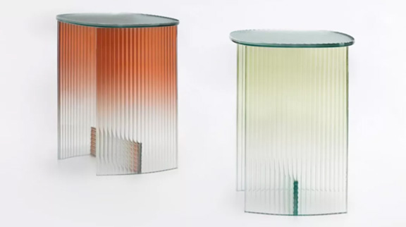 位于曼谷的設(shè)計公司Thinkk Studio,使用凹槽玻璃制作了一套具有現(xiàn)代風(fēng)格的橢圓形邊桌。