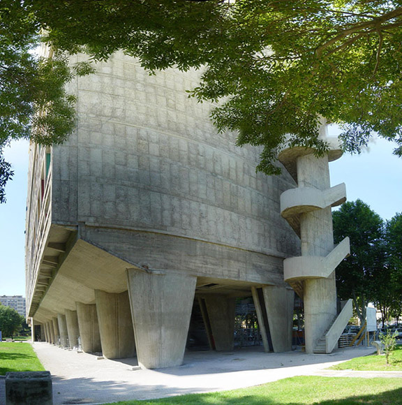 1932年,勒·柯布西耶出版了《走向新建筑》一書,書中大力宣揚機械的美,這也使得勒·柯布西耶成為“機械美學”的奠基人。他的觀點強調功能性、強調人能戰勝自然。在對建筑設計方法的問題上勒·柯布西耶提出“平面是由內部到外部開始的,外部是內部的結果”。1926年,勒·柯布西耶提出著名的“建筑五要素”其中一條對應了卡斯特的“流動的空間”,并運用到他的代表作馬賽公寓中,公寓底部可供車輛和行人通行,內部設有商店、學校、體育館、商場等形成了一個小而豐富的社區環境。
