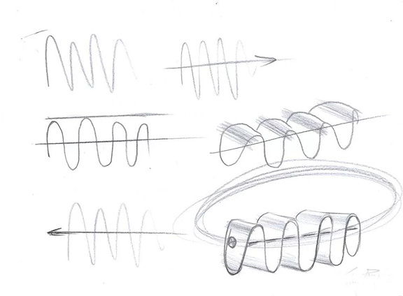 "波浪茶幾“的草圖是作者無意間在紙上隨手畫了一個波浪線,突然感覺這個也是一種自然而幽美的線條,是否可以通過材料-木皮的重組,讓傳統的多層板產生不一樣的優美線條?