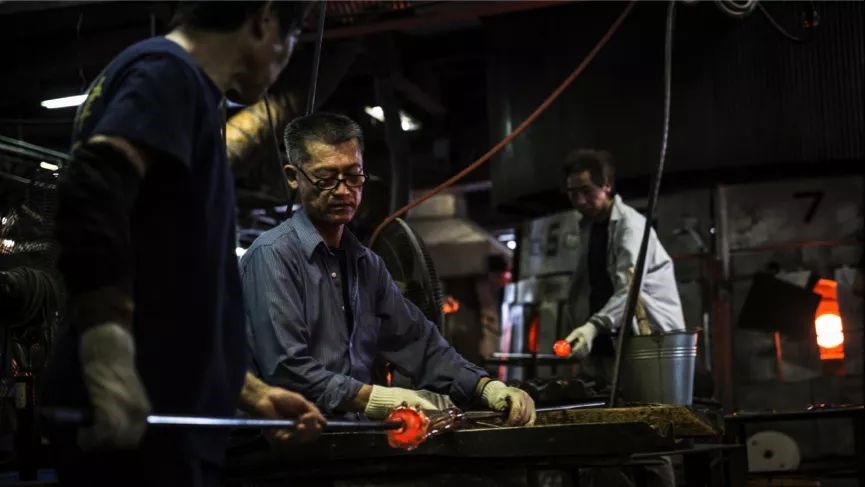 除此外,也有金屬、木制或石膏的模具,將熔化的原料在模具中吹制,待冷卻后即可形成固有的形狀造型。一只硝子的誕生,都是經(jīng)過(guò)燒制、熔化、吹制、切割、打磨等種種繁復(fù)的工藝程序,想要得到一只剔透瑩潤(rùn)、細(xì)膩平實(shí)的硝子,這著實(shí)是在考驗(yàn)玻璃匠人的手工藝水平。