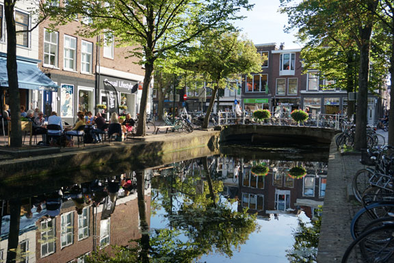 代爾夫特老城并不大,半個小時就能從頭走到尾。我曾在一個下午專門去找弗米爾創作《代爾夫特風景》和《小街》的位置,也曾試圖尋找引起代爾夫特大爆炸的那個火藥庫。結果當然是沒法找到。一方面是因為經過364年的歲月變遷,很多建筑可能進行了重新規劃;另一方面,因為在弗米爾時代,畫家們還沒有走出畫室進行寫生的習慣。也許,弗米爾早已預料到后世會有人來找這個位置,所以他也許是通過這種方式在和我開玩笑吧。在我參觀的過程中,坐在老教堂長椅上的那個安靜地看宣傳冊的女人(圖7.),在新教堂一起實地考察學習的母女(圖8.),讓我非常感動。我也曾坐在老教堂的長椅上,虔誠地望著講經臺,暢想著如果我生活在這里,內心會不會也能如此安靜?是否也能和孩子一起這樣去學習?