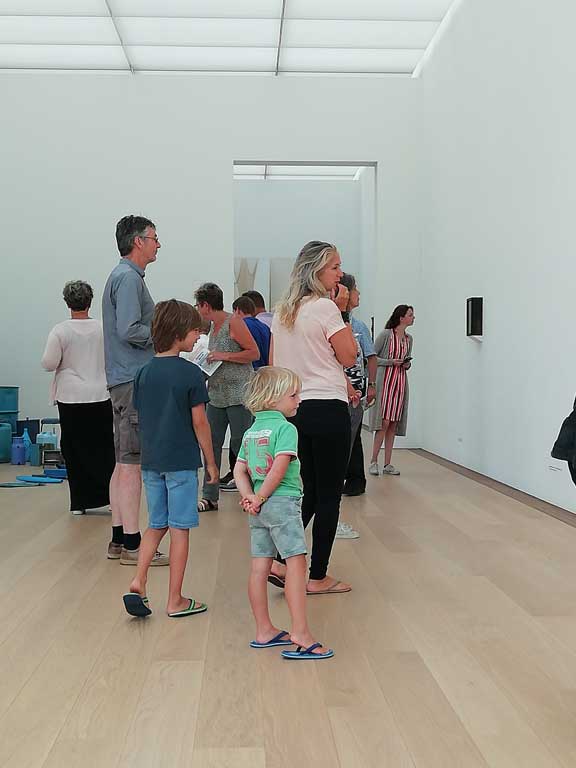 在荷蘭,博物館是人們日常生活必需的場所。當然,荷蘭的博物館對荷蘭人是免費開放的。在考察過程中,我看到很多殘疾人坐著輪椅來參觀(圖5)。他們內心飽滿,不卑不亢,沒有絲毫自卑感,認真地觀看每一幅作品,并和家人交流觀看的心得。另外,還經常看到一家人集體出動,去參觀某個博物館(圖6.)。對一些稍微有些淫穢色情的內容,家長也不避諱。至于孩子能不能理解畫面的內容,家長似乎也并不關心。參觀累了,博物館已經準備好了食物和飲料,有專門供游客坐下來補充能量的場所(圖7.)。游客也可以自帶食物。有的當地人就自己帶著幾片面包,坐在那里,幾分鐘吃完,就算是一頓飯了。對于有一顆非常挑剔的中國胃的我來講,看到他們如此簡單地來敷衍午餐,簡直不可理喻。感慨還是中華美食甲天下