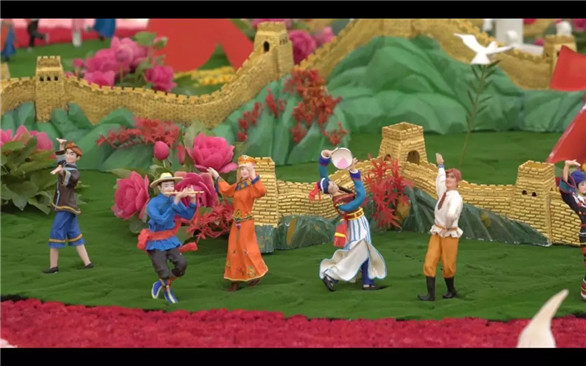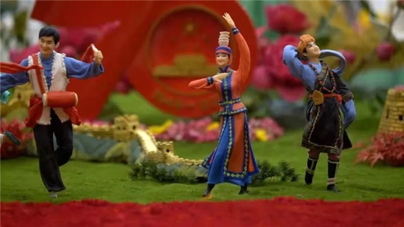 (慶祝中華人民共和國成立70周年招待會民間面塑作品《盛世歡歌》 山東面塑藝人董鳳歧團隊創作)