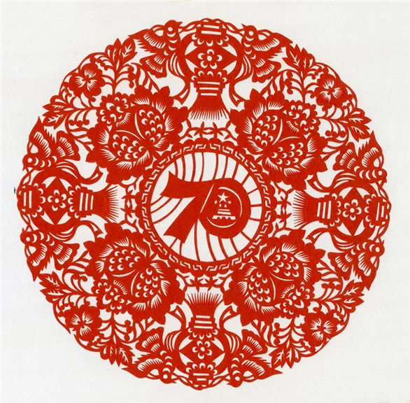 慶祝中華人民共和國成立70周年國慶招待會民間剪紙紀念品《普天同慶》 董林美制作