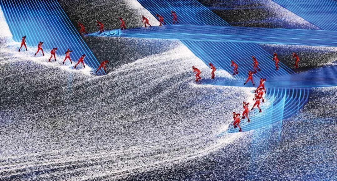 2022年,北京冬奧會開幕式、閉幕式的視效設計成為世界體育理念與中國美學精神、數字技術工具與傳統工藝文化融合運用的一個典型。其中,運用程序計算和數字可視化技術生成的一系列影像,取代以往大型表演活動的人海戰術,有助于管理上的疫情防控、經濟上的精簡節約,并呈現了特定的視覺形象、文化意象和詩化意境,形成從一片雪花飛舞到千萬片雪花匯聚等具有動態變化、富有細膩質感、包含思想寓意的敘事表達,營造了影像的沉浸式體驗。在數字技術充分運用的同時,相關創意設計還包含大量傳統工藝文化元素,如盤長、戶牖、剪紙、年畫等傳統圖案紋飾,以及絲帶交織等過程的數字影像呈現,表現傳統工藝的紋飾之形與動態之意,形成傳統工藝的語言、寓意與數字技術的結合,成為傳統與現代、科技與藝術、中國文化與世界發展相融匯的、富有創造力的表達。由此可見,尖端技術與文化傳統結合、數字技術與傳統工藝互為補充,塑造了新的文化標識度。