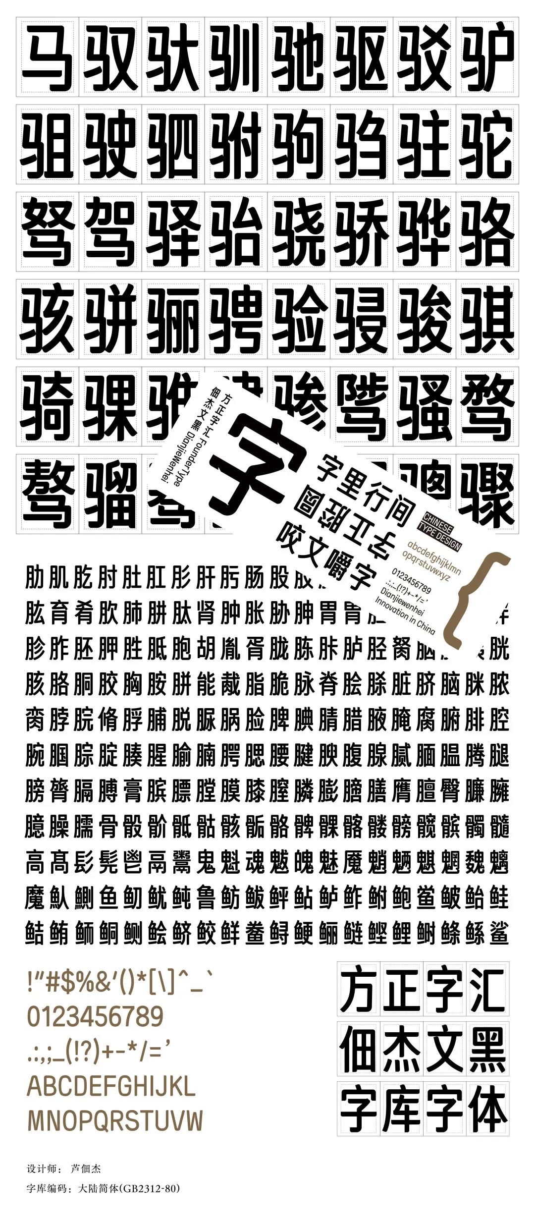 佃杰文黑是建立在對西周金文的理性分析和實踐研究的基礎上,以簡體漢字字形規范為標準,探究如何從中國古文字的土壤中汲取靈感,并應用至字庫字體設計,其設計過程蘊含著中國傳統漢字文化風韻的藝術化情感表達。