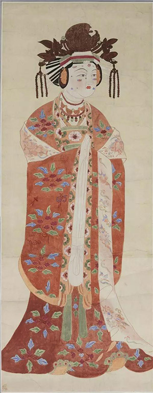 首頁 > 藝術名家 > 常沙娜 > 藝術作品 藝術簡介 個人著作 藝術作品 個人榮譽 女供養人(五代61窟) 發布: 2021-04-20 13:52 | 作者: | 來源: 作品品類:紙本 畫稿 作品尺寸:159.5*62cm 創作年份:1946年